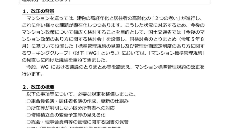 国土交通省:「マンション標準管理規約」の改正について