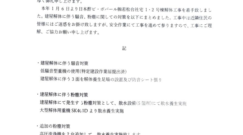 日本酢ビ・ポバール解体工事に伴う粉塵対応について