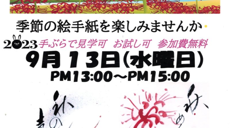 9月13日(水)絵手紙 趣味友参加のお知らせ
