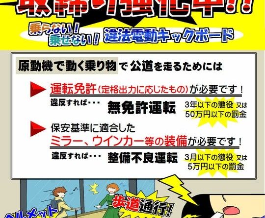 電動キックボード等の取り締まり強化中