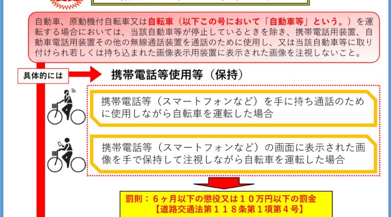 自転車運転中の携帯電話等使用禁止について