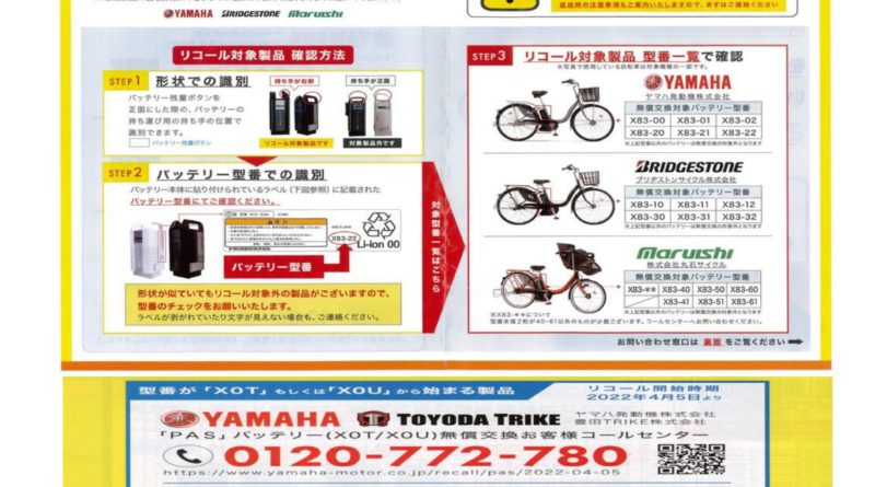 電動アシスト自転車用のリチウムイオンバッテリーの無償交換について