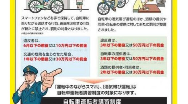 自転車の危険な運転に新しく罰則が整備されました