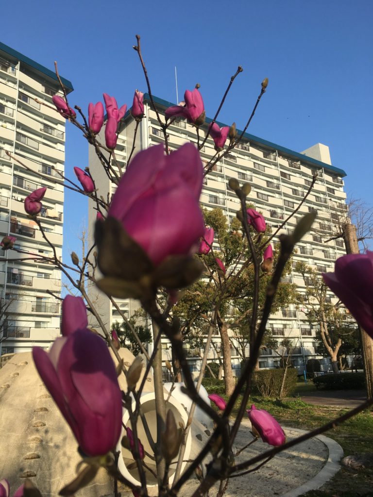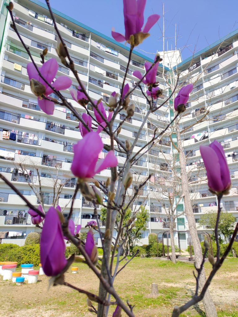 2月に植樹したモクレンが開花しました。