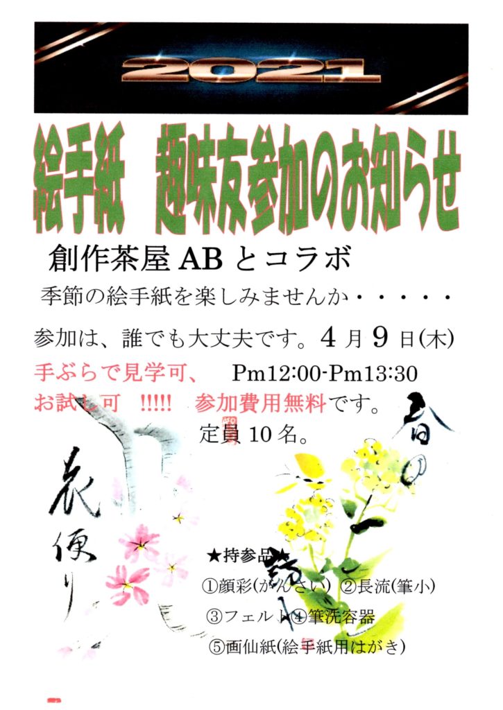 4月9日 お花見カフェ コラボ 絵手紙教室開催