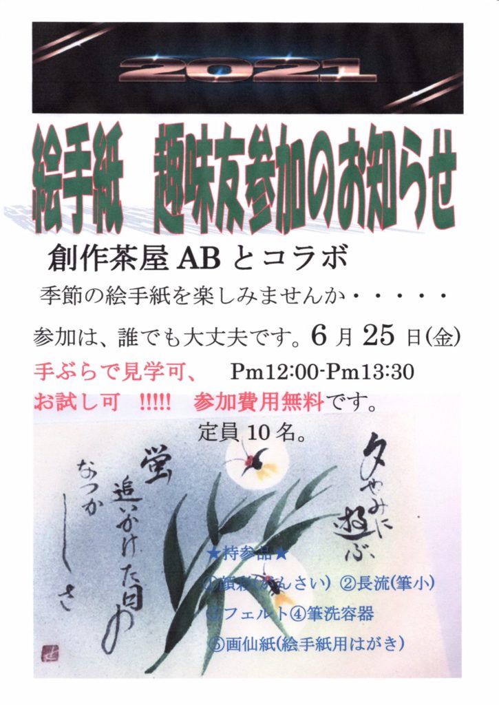 6月25日 水無月カフェ コラボ 絵手紙教室開催