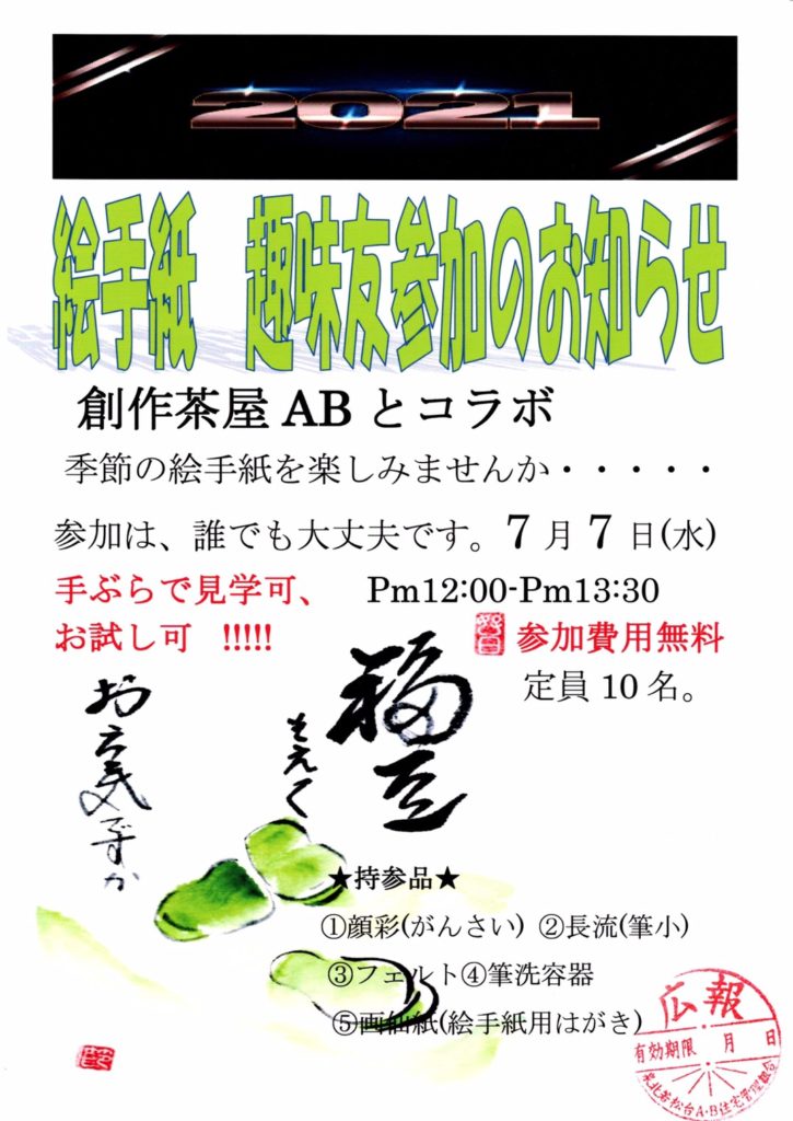 7月7日 たなばたカフェ コラボ 絵手紙教室開催