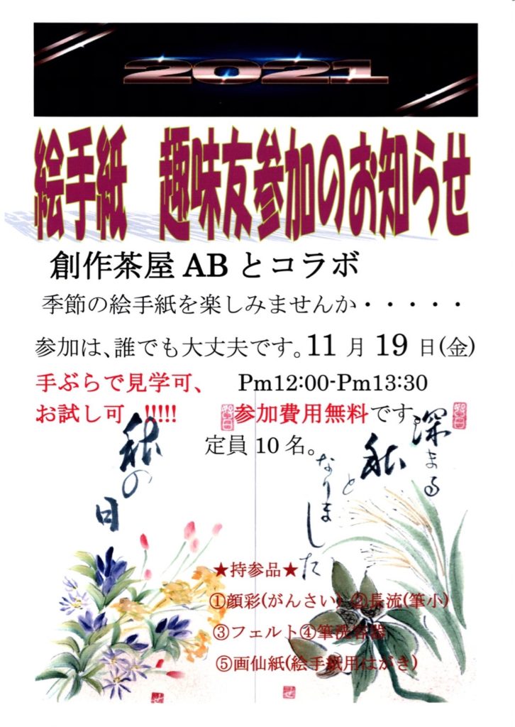 11月19日(金)みのりの秋カフェコラボ 絵手紙教室開催