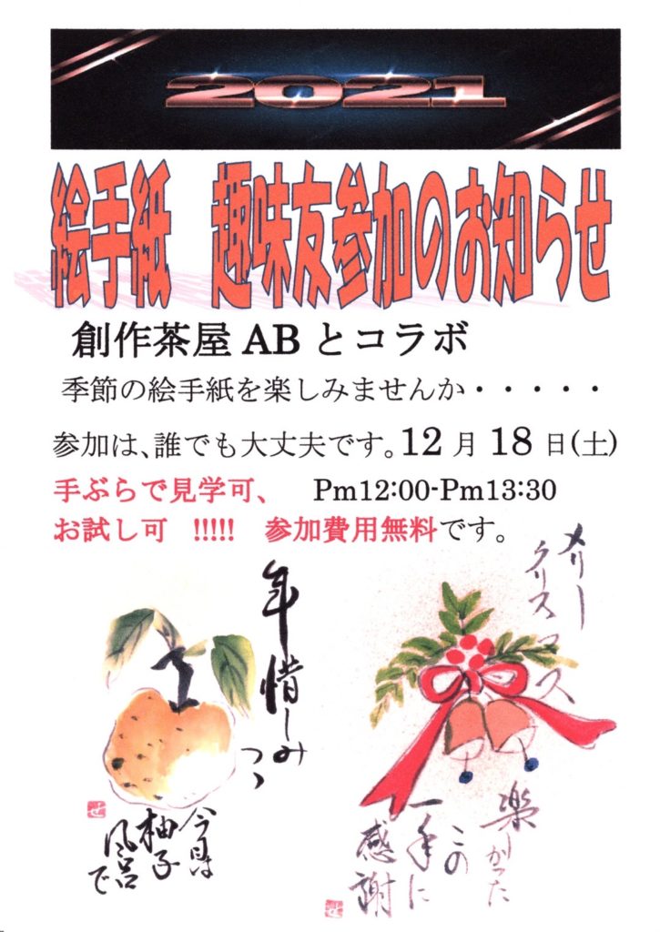 12月18日(土)クリスマスカフェコラボ 絵手紙教室開催