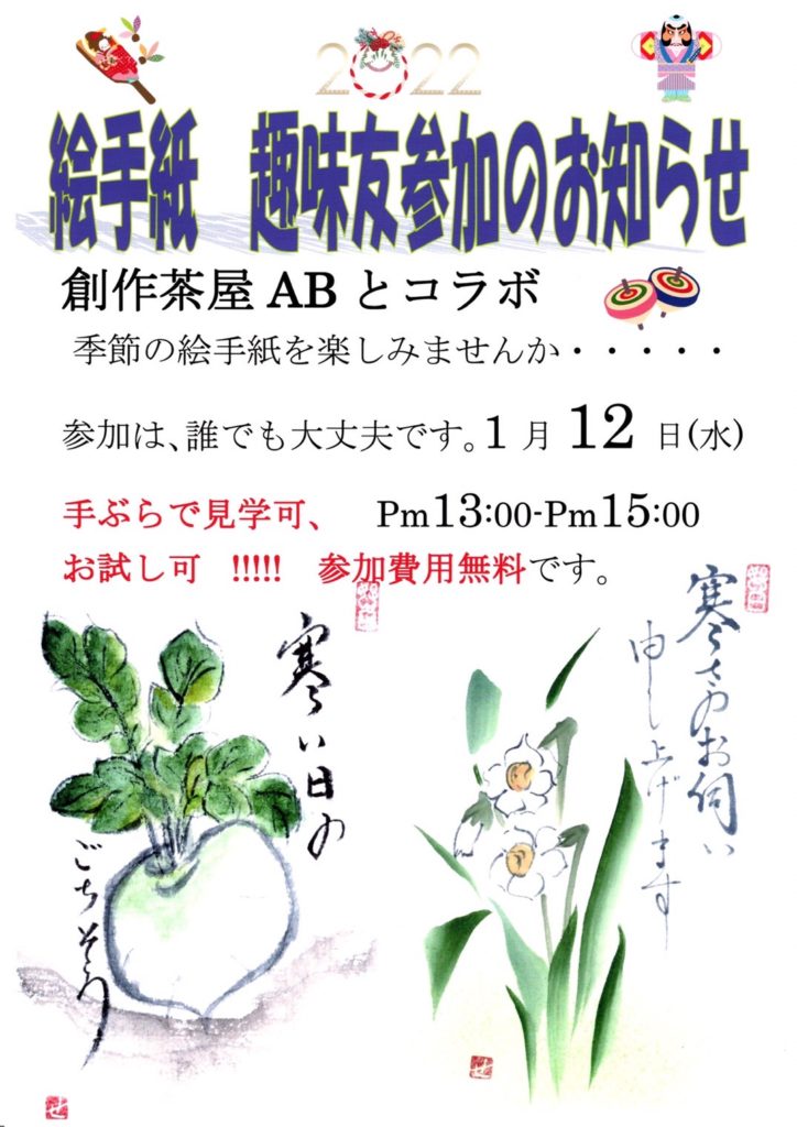 1月15日(土)ニューイヤーカフェコラボ 絵手紙教室開催