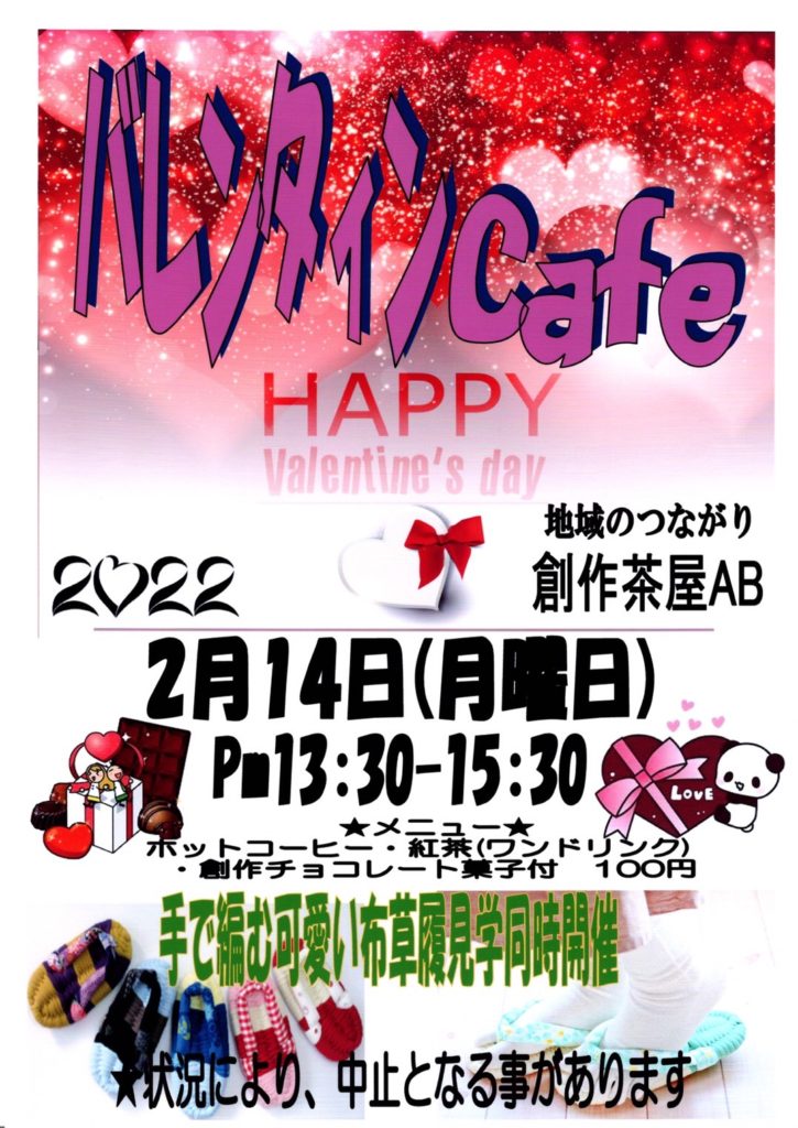 2月14日(月)バレンタインカフェ 手で編むかわいい布草履見学同時開催