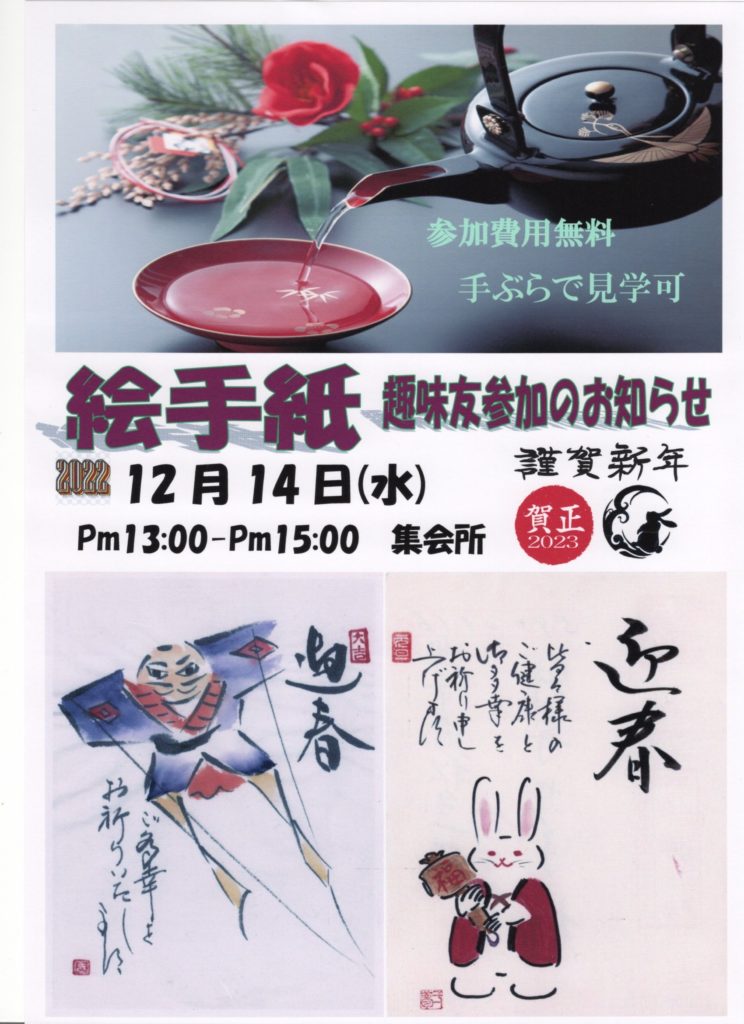 12月14日(水)絵手紙 趣味友参加のお知らせ