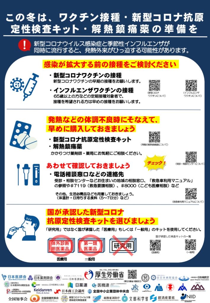 この冬は、ワクチン接種・新型コロナ抗原定性検査キット・解熱鎮痛薬の準備を