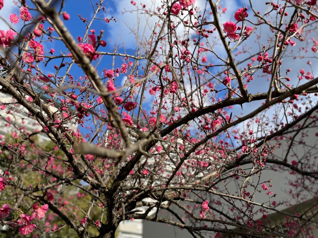 集会所横の紅白梅