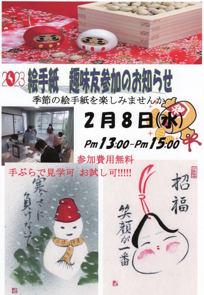 2月11日(土)バレンタインデーカフェ コラボ 絵手紙 趣味友参加のお知らせ