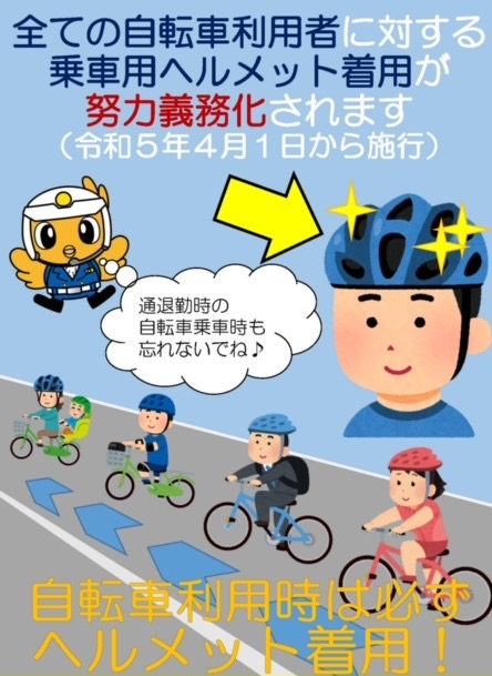 全ての自転車利用者に対する乗車用ヘルメット着用が努力義務化されます