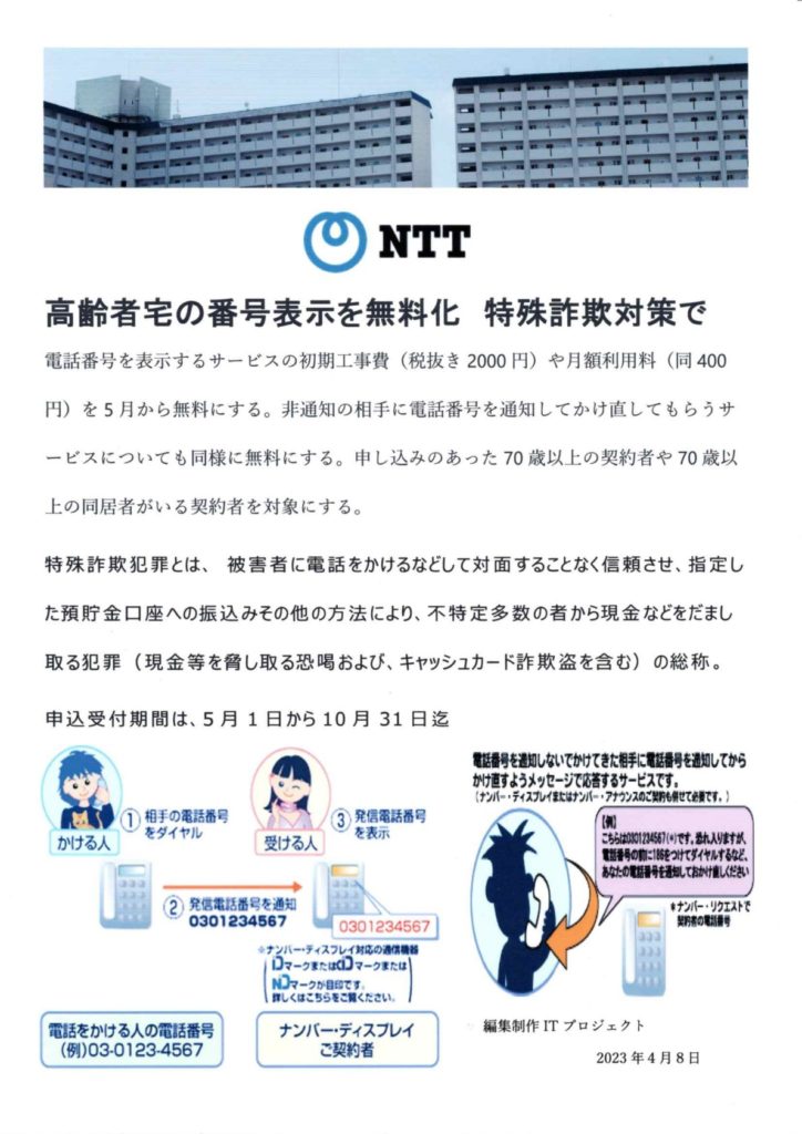 高齢者宅の番号表示を無料化