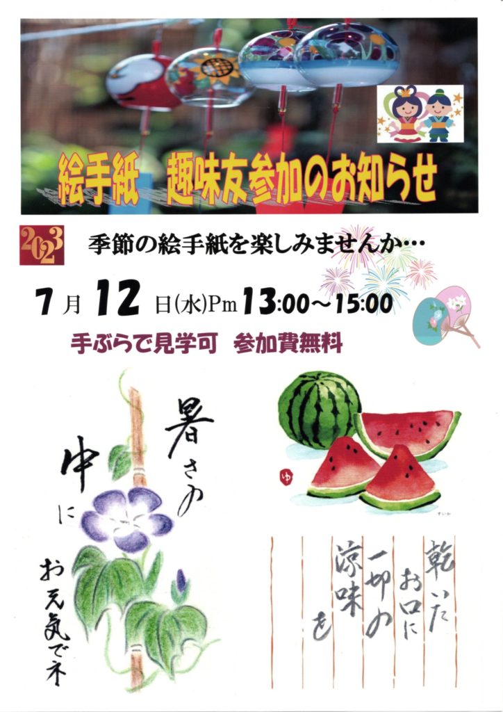 7月12日(水)絵手紙 趣味友参加のお知らせ
