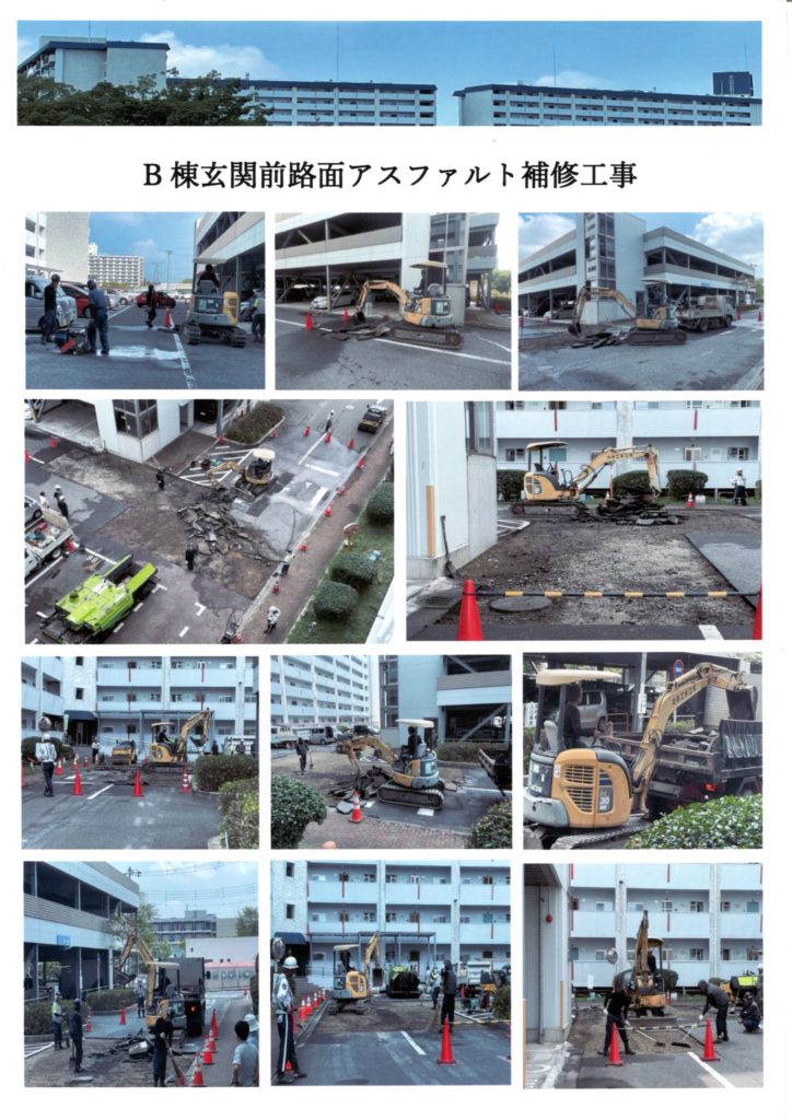 B棟玄関前 路面アスファルト補修工事