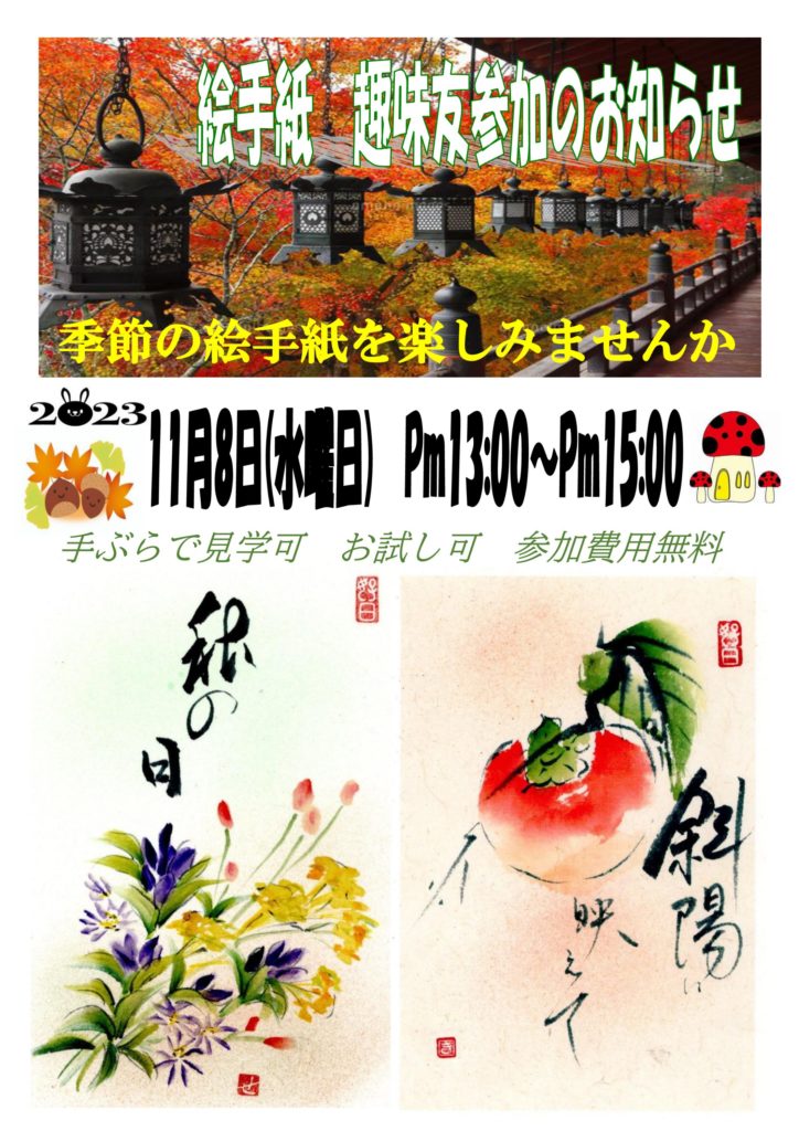 11月8日(水)絵手紙趣味友参加のお知らせ