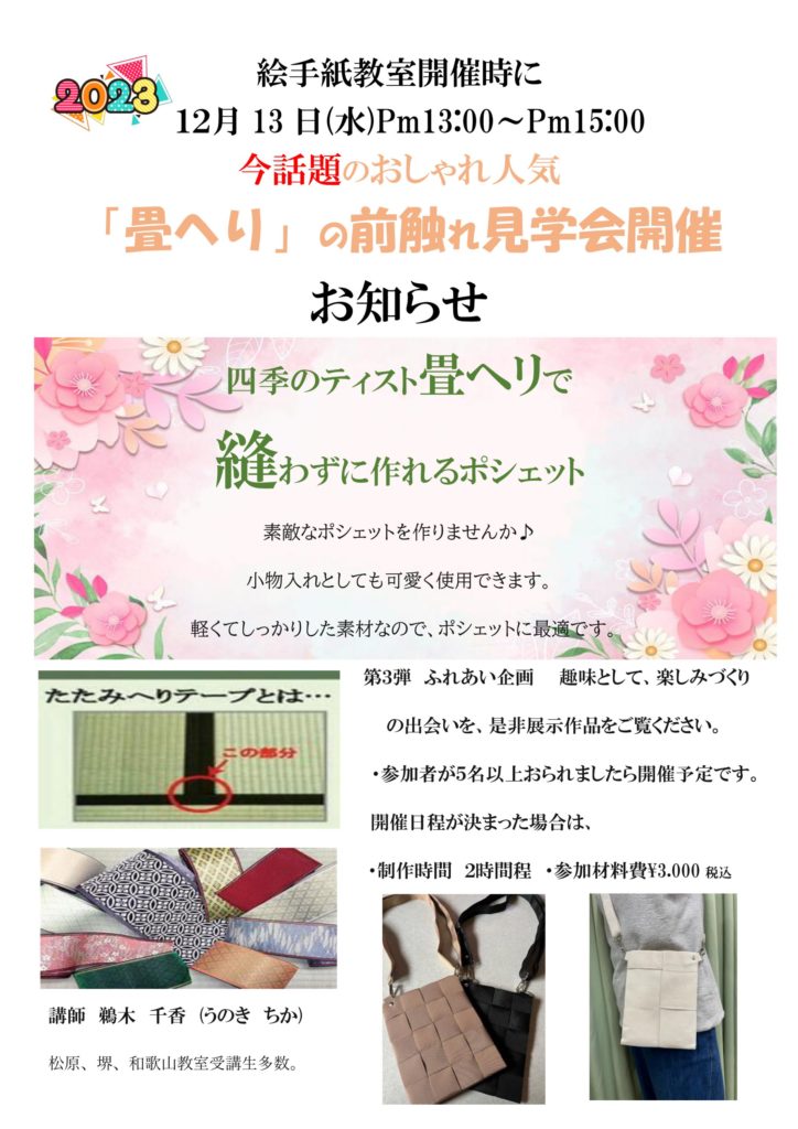 12月13日(水)畳ヘリ前触れ見学会開催