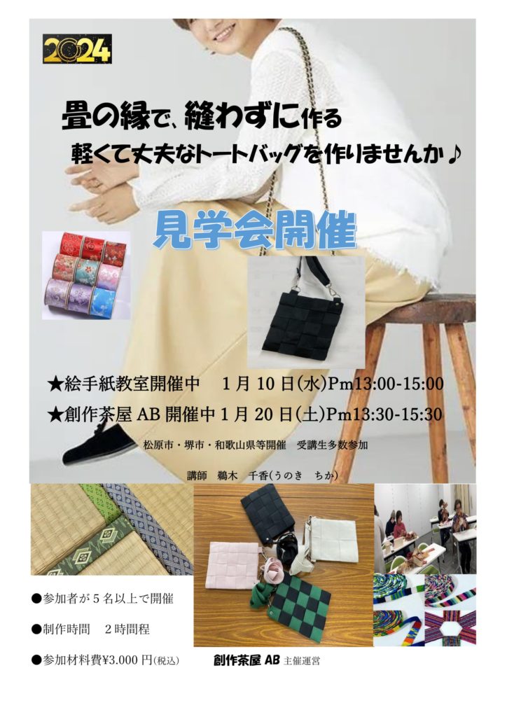 畳の縁で縫わずに作る軽くて丈夫なトートバッグを作りませんか 1月10(水)日、1月20日(土)
