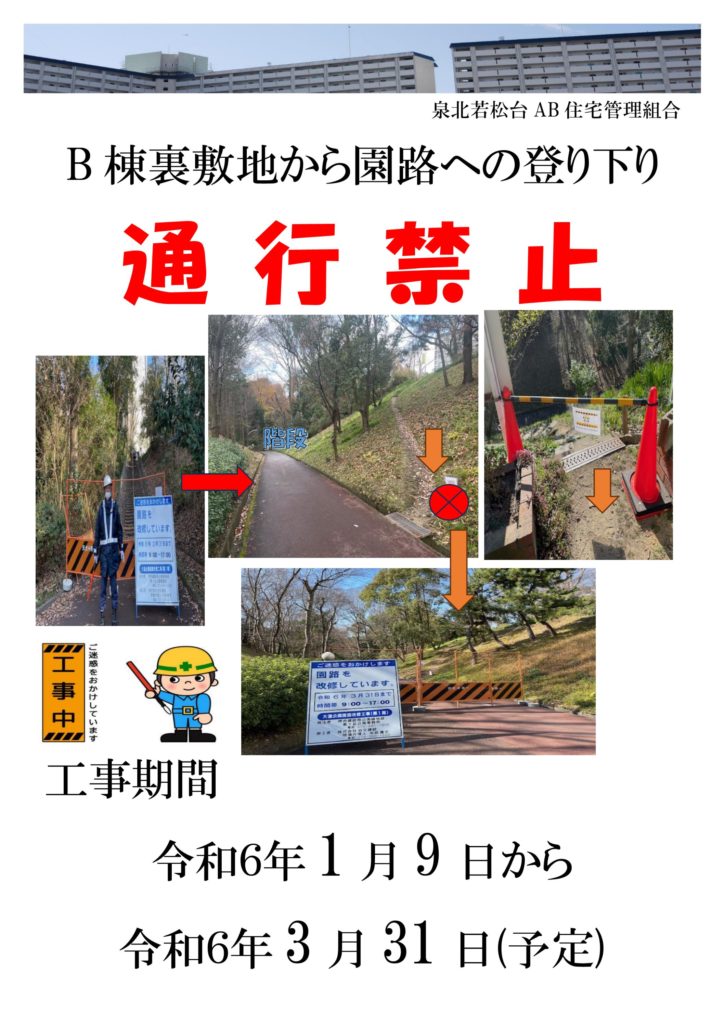 B棟裏敷地から園路への上り下り 通行禁止