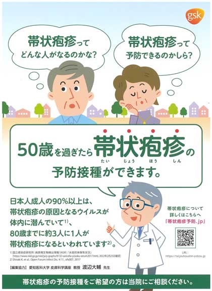 50歳を過ぎたら 帯状疱疹の予防接種ができます