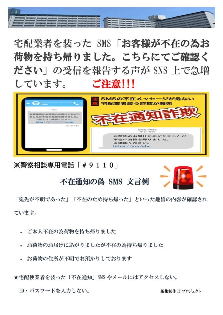不在通知のSMSに注意