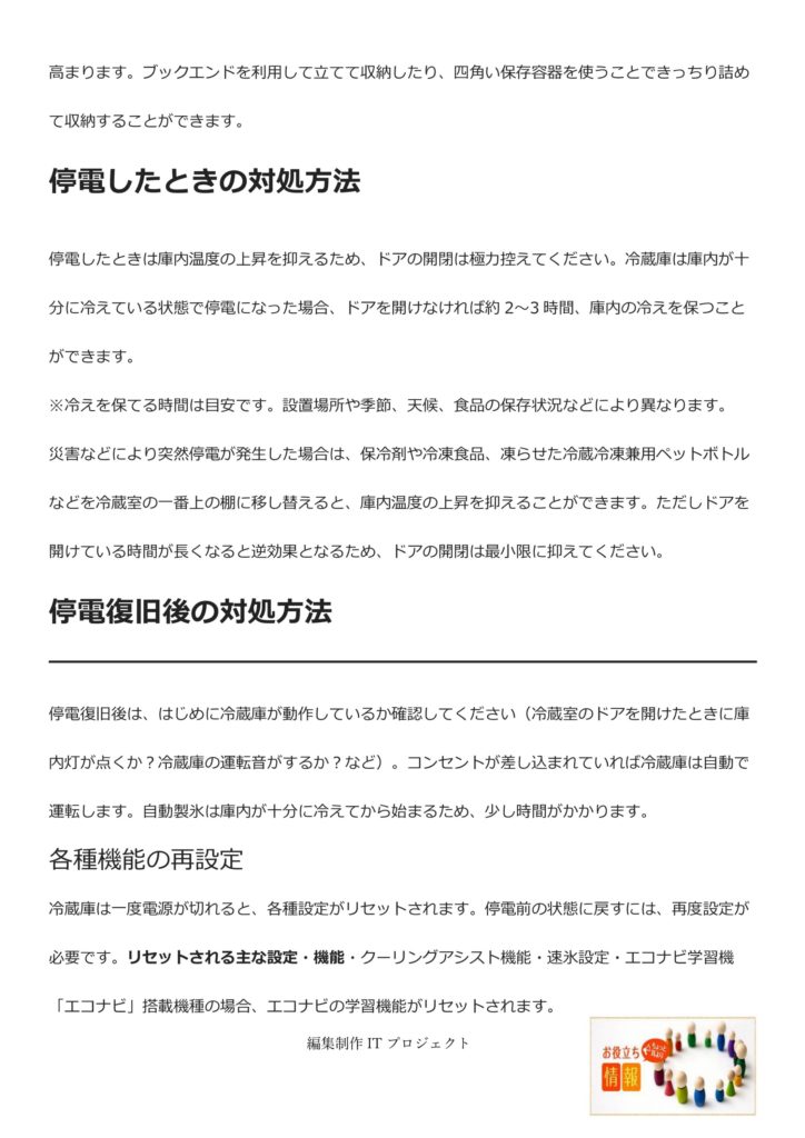 冷蔵庫の停電前の準備と停電時、停電復旧後の対処方法