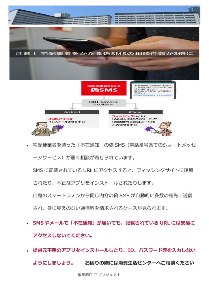 注意! 宅配業者をかたる偽SMSの相談件数が3倍に