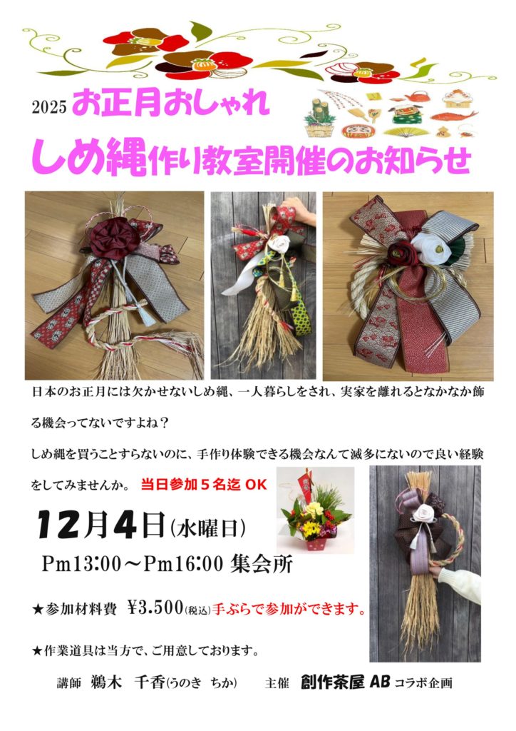 お正月おしゃれ しめ縄づくり教室開催のお知らせ