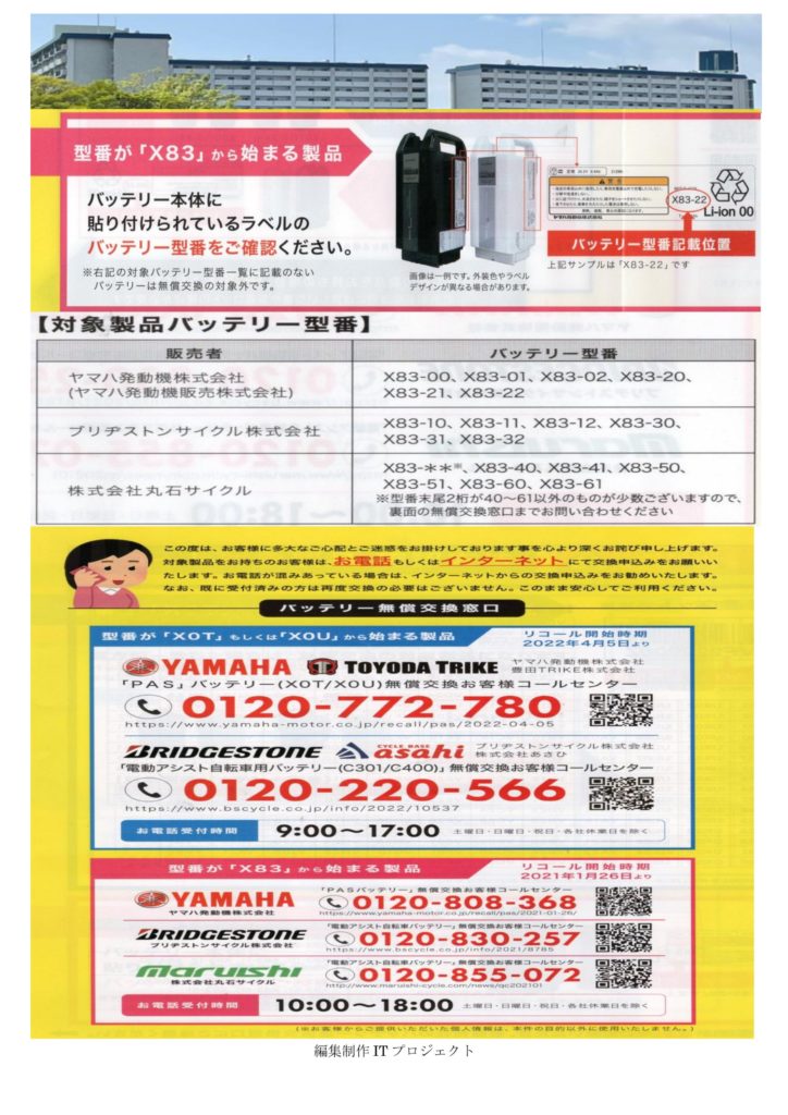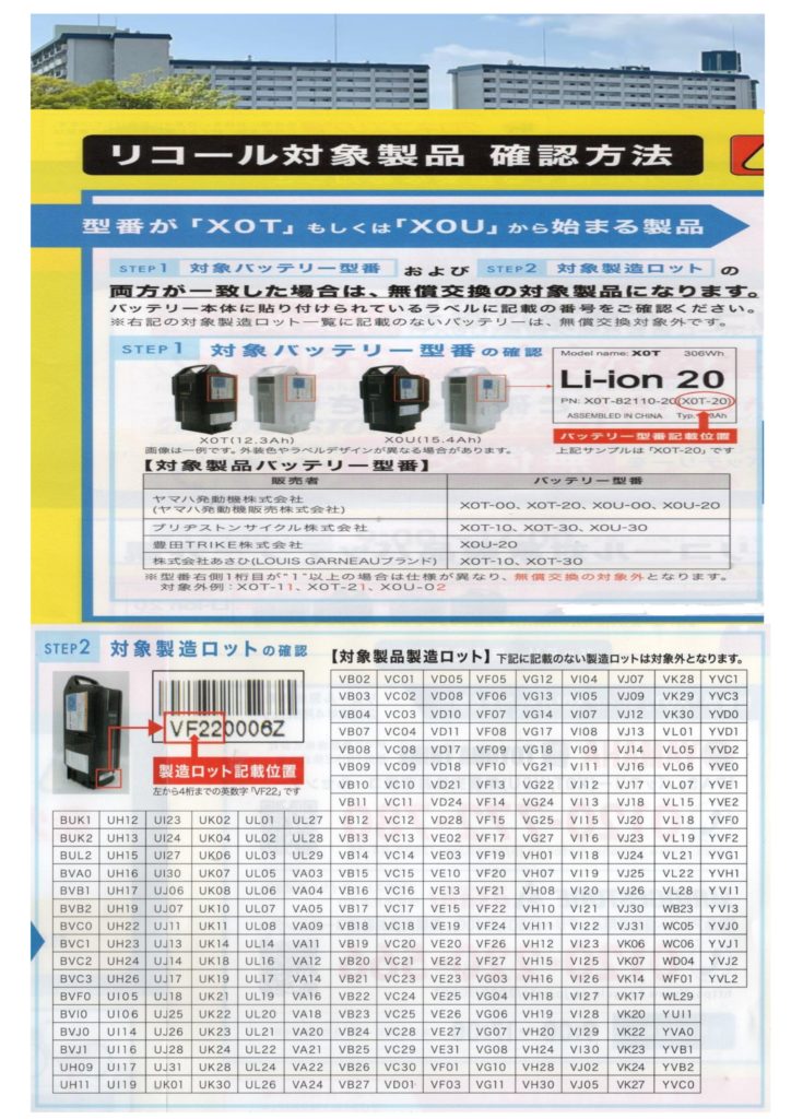電動アシスト自転車のバッテリーから発火する恐れがあります