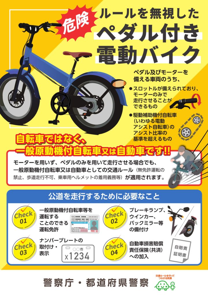危険 ルールを無視したペダル付き電動バイク