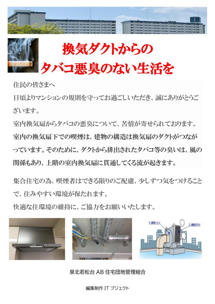 換気ダクトからのタバコ悪臭のない生活を