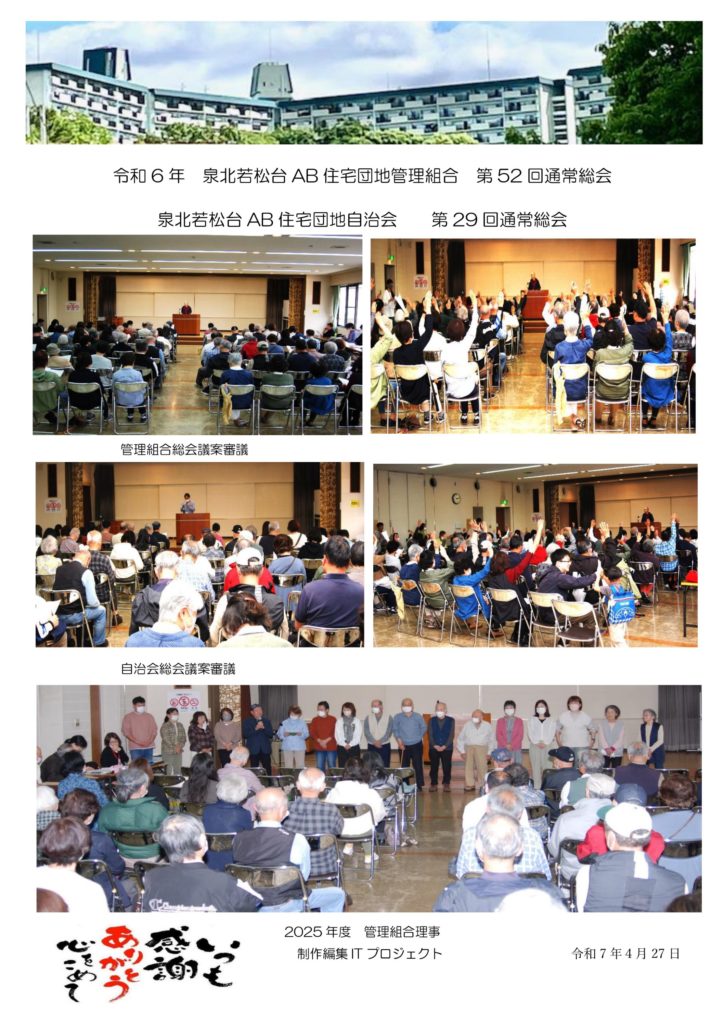 令和6年 泉北若松台AB住宅団地管理組合 第52回通常総会 泉北若松台住宅団地自治会 第29回通常総会