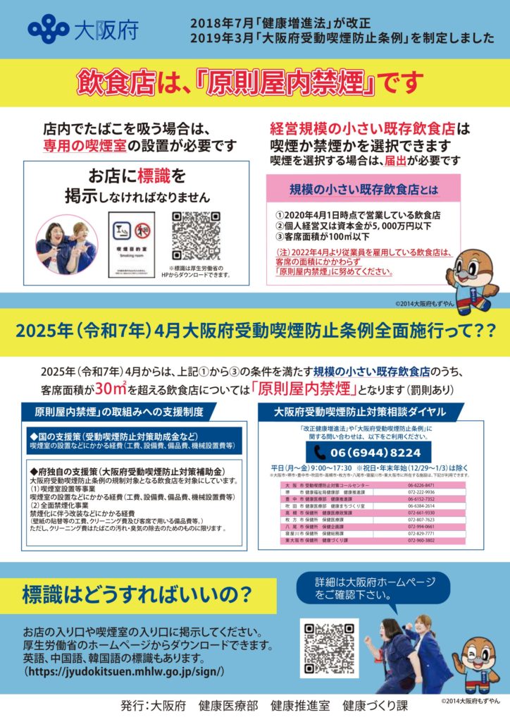 大阪府受動喫煙防止条例全面施行