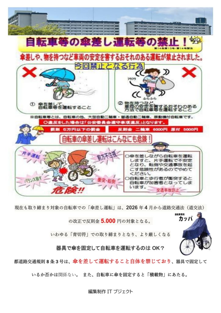 自転車等の傘さし運転等の禁止!