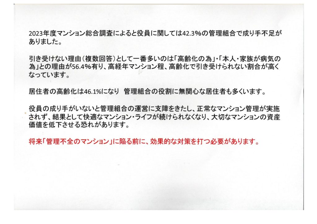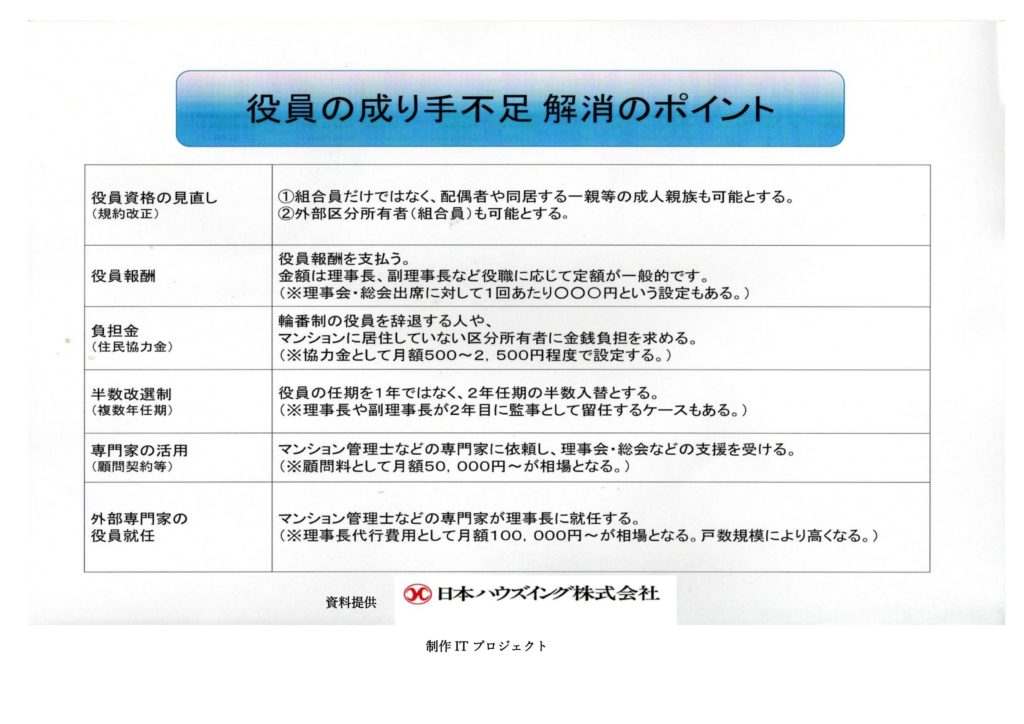 役員のなり手不足ついて対応のご提案
