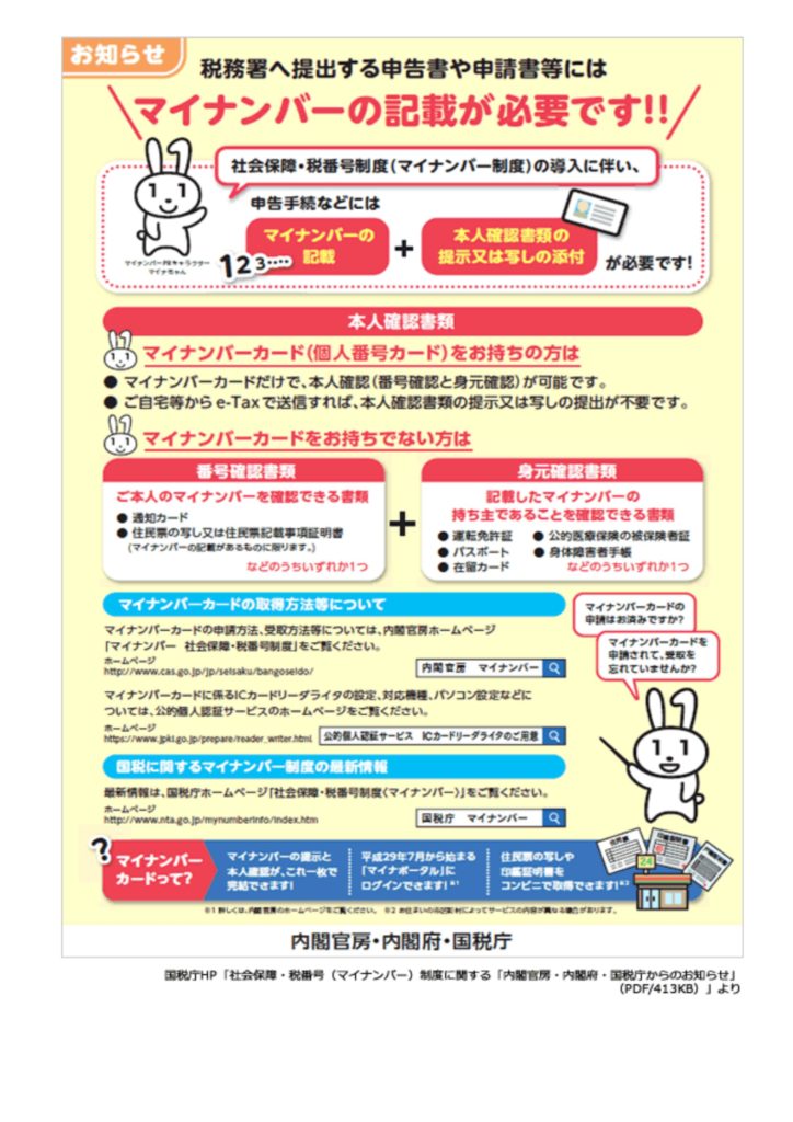 税務署へ提出する申告書や 申請書等にはマイナンバーの記載が必要です