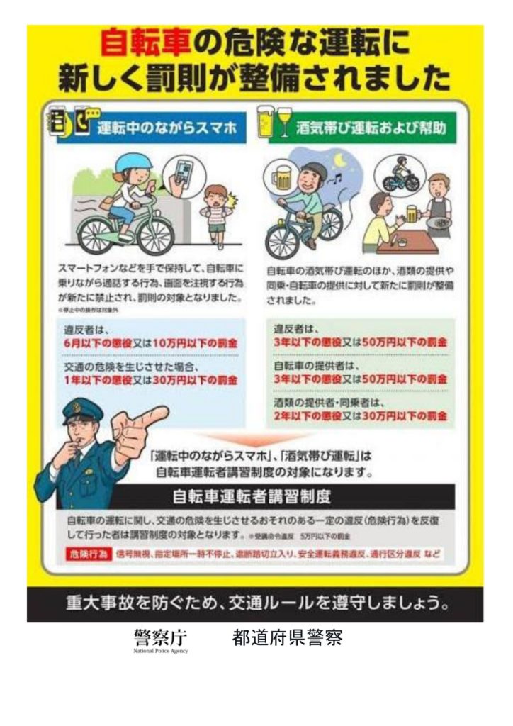 自転車の危険な運転に新しく罰則が整備されました